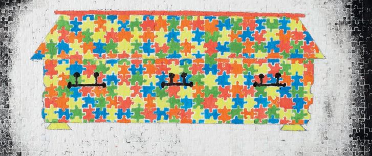 Abstrakte Formen und Farben zum Thema Tod werden frei assoziiert. Auch das Einbeziehen von Brüchen oder Begrenzungen im Material ist möglich. Das Einbeziehen anderer Materialien wie Sand oder Kies erweitern das Repertoire um sich dem Thema zu nähern. Konzeptionierung, Materialvorbereitung und arbeitsaufwendigere Teile des Erstellungsvorgangs können, je nach Lerngruppe, auch bereits in Heimarbeit begonnen werden.