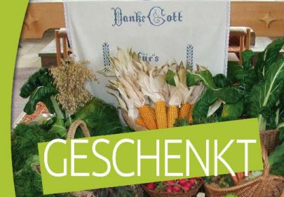 Die Anregung "Geschenkt" mit 29 Seiten bietet Bausteine zum Erntedank an. Themen dabei sind: Sich satt essen und die Kardinaltugenden. Auch Geschichten wie der Bauer und die Bohnen der Dankbarkeit und die Ameise und das Weizenkorn wird enthalten (Seite 30-33)