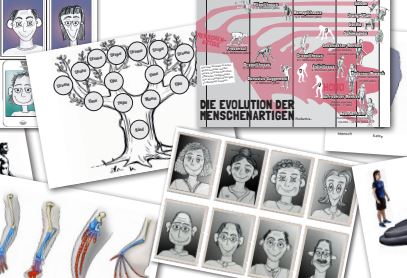Der Einstieg gelingt über eine Bildanalyse. Sechs Impulsfragen im Material erleichtern dies. In einem weiteren Schritt wird der Stammbaum des Menschen untersucht. Dabei werden die Begriffe Vorfahren und Nachfahren behandelt. In einem weiteren Schritt wird eine Grafik der Herkunft des Menschen ausgewertet. Darauf sind die verschiedenen Vorformen zwischen dem Schimpansen und dem Homo sapiens sapiens abgebildet. Im nächsten Schritt wird in Gruppenarbeit ein Familienpuzzle mit im Material enthaltenen Bildern von Personen gestaltet. Dabei zeigt sich, dass Eigenschaften der Eltern wie fehlende Haare, Form der Ohren und Kopfform weitergegeben werden. Eine detaillierte Anleitung ist im Material enthalten.