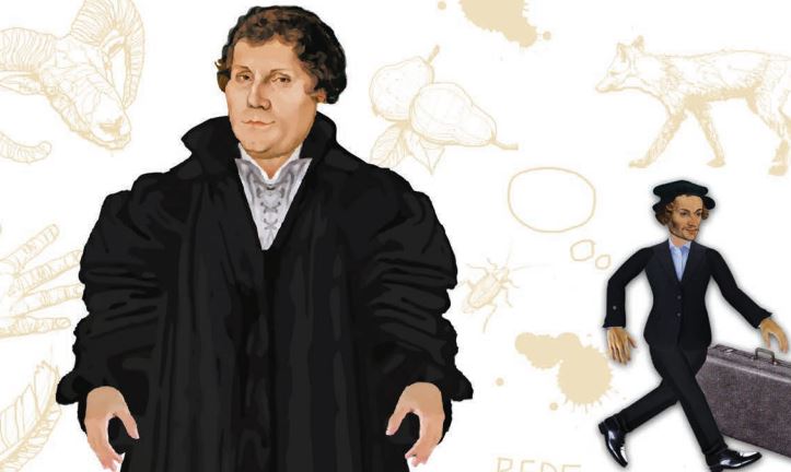 Was Bastelvorlagen zu Masken ermöglichen das Nacherzählen der Fabeln im Rollenspiel. In einem weiteren Schritt wird ein Bastelauftrag zur Ordnung von Wörtern und Sätzen zu einem Sprichwort Luthers angeboten. Die zwölf Redewendungen werden zusammengesetzt. Im nachfolgenden Schritt wird die Bedeutung und Herleitung von verschiedenen Sprichwörtern vorgestellt. Diese Sprichwörter entstammen aus der Bibelübersetzung Luthers. Ein weiterer Schritt enthält einen Lückentext zur Stadt Wittenberg. Es entsteht ein Eintrag für einen Duden Artikel, über den die Veränderung der Sprache beschrieben wird. Sprache ist nicht statisch, sie entwickelt sich. In einem nächsten Schritt ist ein Wortgenerator als Bastelanleitung enthalten. Dabei drehen sich zwei Papierscheiben und erzeugen so neue Wortkombinationen.