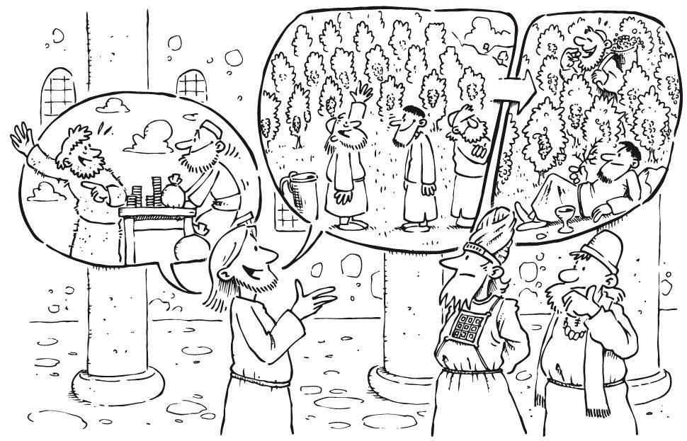 Dieses Ausmalbild behandelt Gerechtigkeit und Umkehr nach einem Fehler. Dazu wird das Gleichnis vom ungerechten Verwalter genutzt.