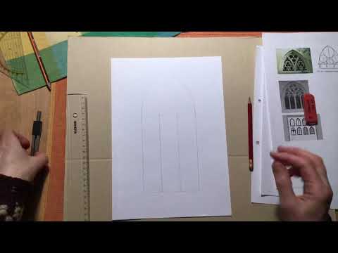 Dieses Video leitet das Zeichnen eines gotischen Kirchenfensters an. Dazu wird der äußere Rahmen mit Bleistift und Lineal angefertigt. Später können dann weitere dekorative Elemente oder darstellungen einzelner Bibelverse farbig in die vier Unterteilungen des Fensters gemalt werden.