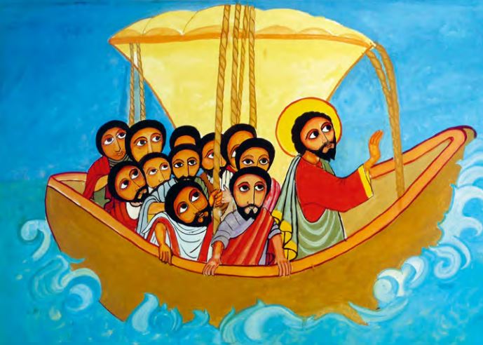 Kurze Vorstellung des Themas: Vertrauen und Glaube in schwierigen Zeiten anhand der biblischen Erzählung von der Stillung des Seesturms und der Kunst von Alemayehu Bizuneh.