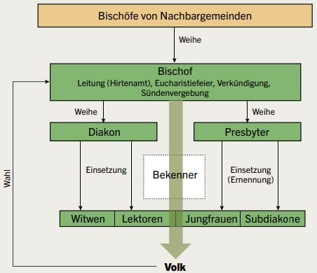 Die Anregung "Gemeindeleitung in den ersten zwei Jahrhunderten" mit drei Seiten bitte Diagramme und kurze Texte zum Verständnis der Gemeindeleitung wie sie in den Briefen im Neuen Testament vorgestellt wird. Dabei werden sowohl die ersten Ämter wie die pressbytter und die Diakonie vorgestellt als auch die detailliertere Struktur mit einem Bischof an der Spitze.