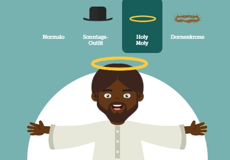 Diese Anregung enthält eine Webseite mit einem Generator für ein persönliches Weltbild. Dabei kann der Fokus z.B. auf Armut, Heiligkeit oder die Hautfarbe gelegt werden. Die persönliche Auswahl wird dann im Plenun besprochen. So zeigt sich, dass jeder Christ ein eigenes Jesusbild mit unterschiedlichem Fokus hat.