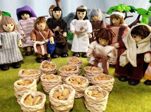 Die Anregung „Alle werden satt“ mit 11 Seiten stellt die biblische Geschichte der Speisung der Fünftausend (nach Matthäus 14,14–21; Markus 6,32–44 und Lukas 9,10–17) dar. Sie bietet 9 Bildmaterialien, die in nummerierter Reihenfolge die zentrale Erzählung visualisieren: Jesus zieht sich mit seinen Jüngern an einen einsamen Ort zurück, hat Erbarmen mit den Kranken, segnet die fünf Brote und zwei Fische, lässt die Jünger das Essen austeilen, und alle werden satt, wobei zwölf Körbe übrig bleiben. Das Material eignet sich besonders für den Einsatz im Religionsunterricht der Grundschule oder in der Unterstufe, etwa zur Einführung in Wundergeschichten oder zum Thema Teilen und Gemeinschaft.