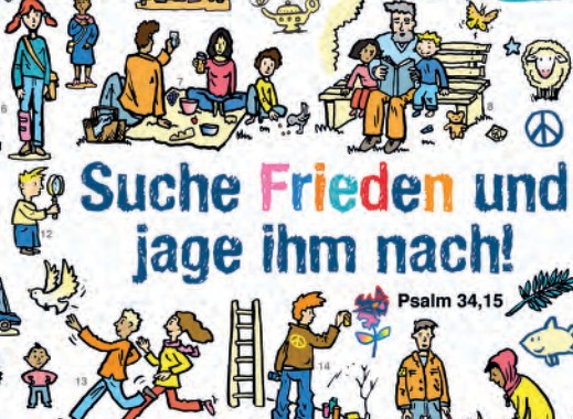 Das Heft Kinder – Friedensucher gliedert sich in vier Kapitel mit insgesamt 17 praxisorientierten Materialien. In Kapitel 1 (S. 8–14) werden zwei Geschichten vorgestellt: Verabredet, gewartet, gekümmert zeigt anhand der Freunde Felix und Nele, wie Missverständnisse zu Streit führen können und wie Versöhnung gelingt. David sucht Frieden erzählt die biblische Geschichte vom jungen David, der vor König Saul flieht und durch Vertrauen auf Gott Frieden findet. Beide Geschichten verdeutlichen, dass Frieden aktiv gesucht und gepflegt werden muss.